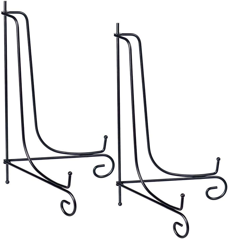 (2 pack)Iron Display Stand Large Black Iron Easel Plate Display Photo Holder Stand, Displays Picture Frames,Decorative Plates, Tablets and Art 17 Inch