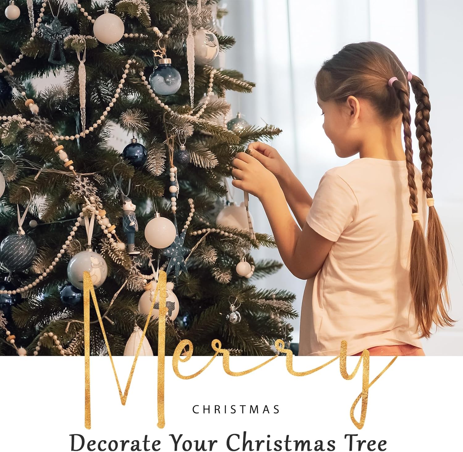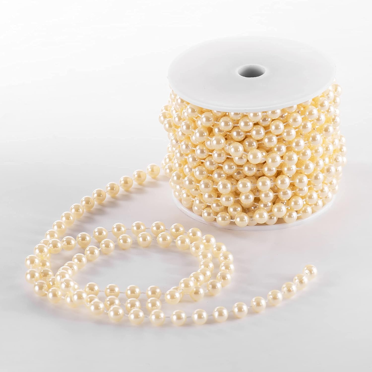 Craft String Pearls 8MM Pearl Bead, 33 Feet Ivory Faux Pearl Garland Spool Roll Strand Wedding Party Decoration, Christmas Tree Decorations