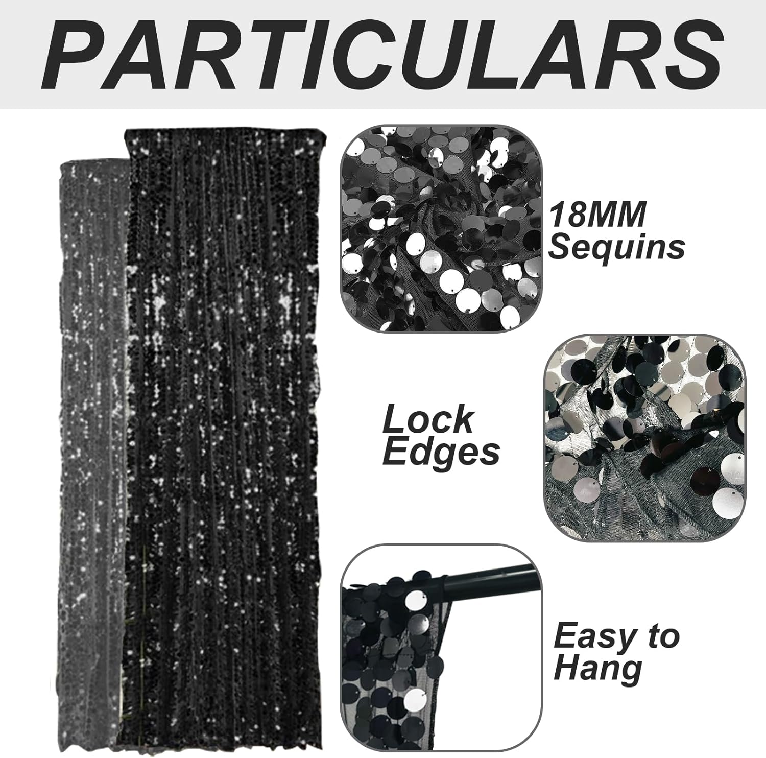 - Each order is for 2 (two) Black 4.5FT wide by 9FT height payette sequin curtains.