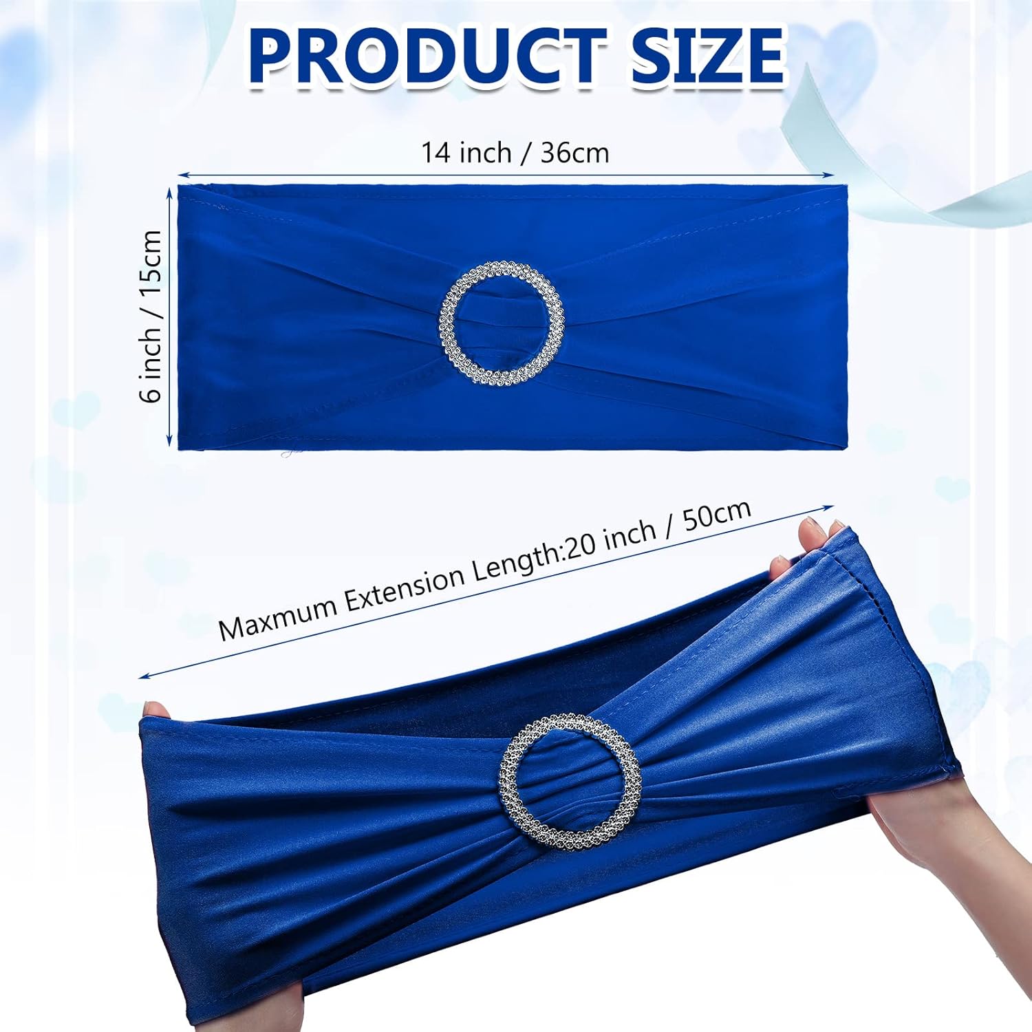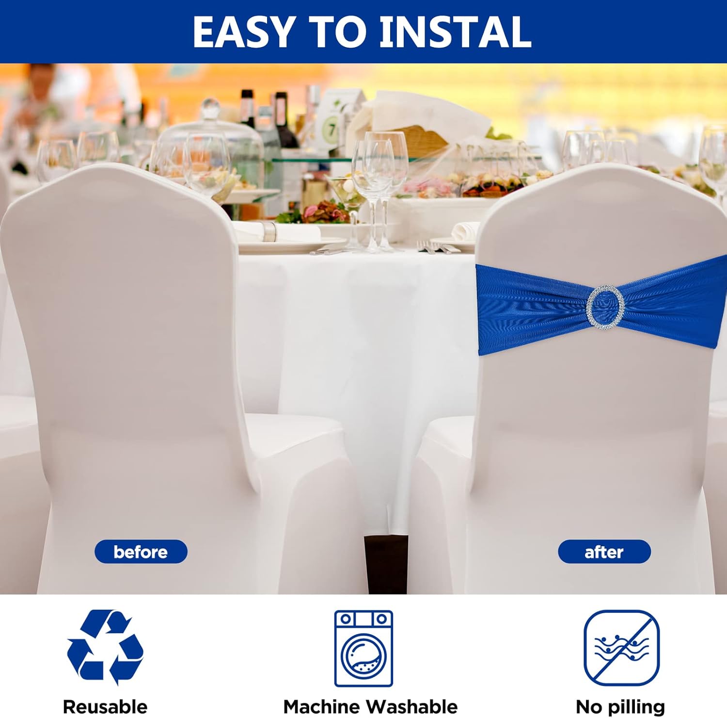 CHENGU 150 Pieces Spandex Stretch Chair Sashes Bows Elastic Chair Cover Bands Ties with Buckle Slider for Wedding Party Reception Events Universal Ceremony Banquet Decorations (Blue)