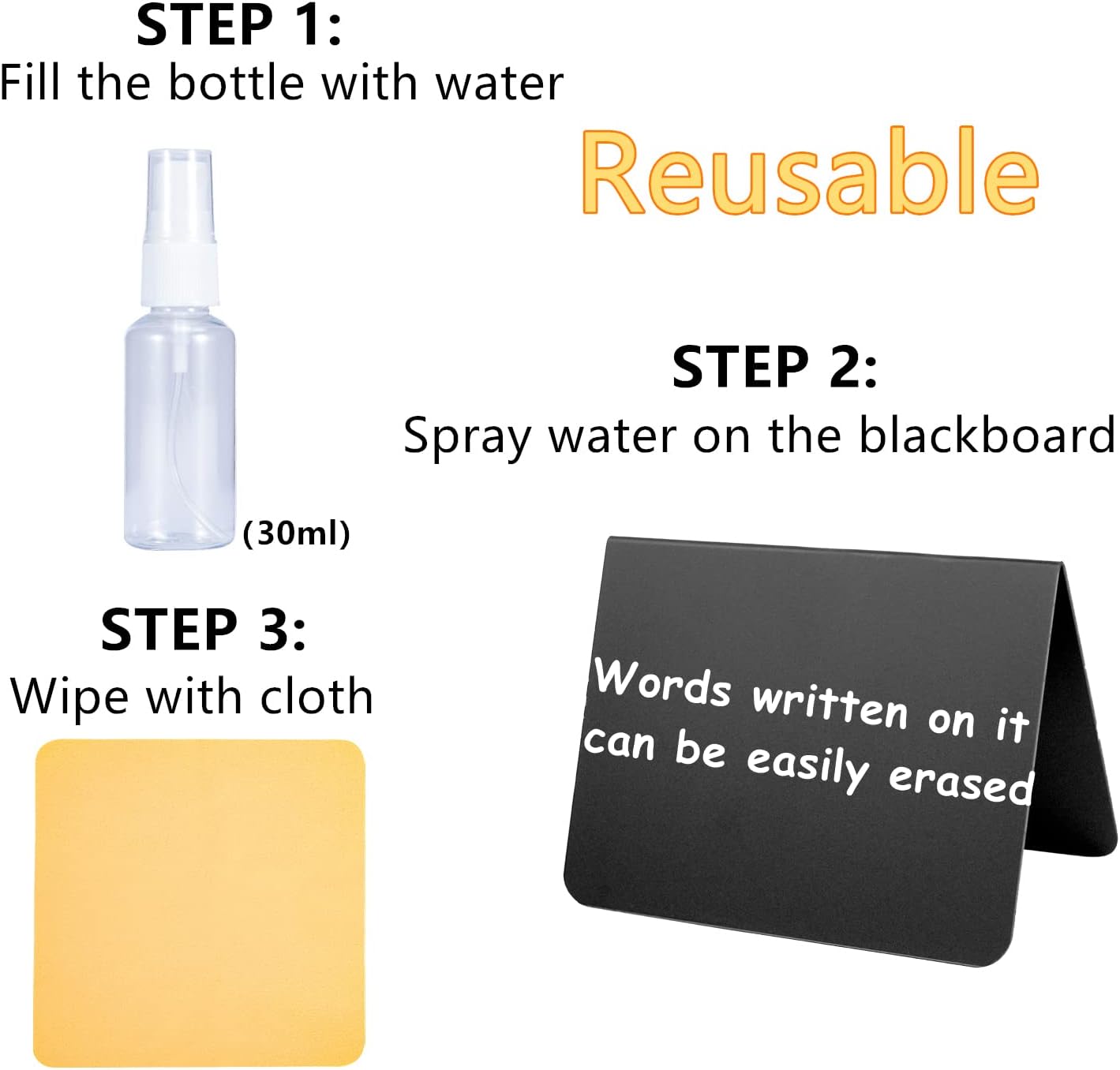 - Sturdy Materials: The small chalkboard sign is made of high quality dark matte black plastic material. Sturdy and waterproof, not easily deformed or broken