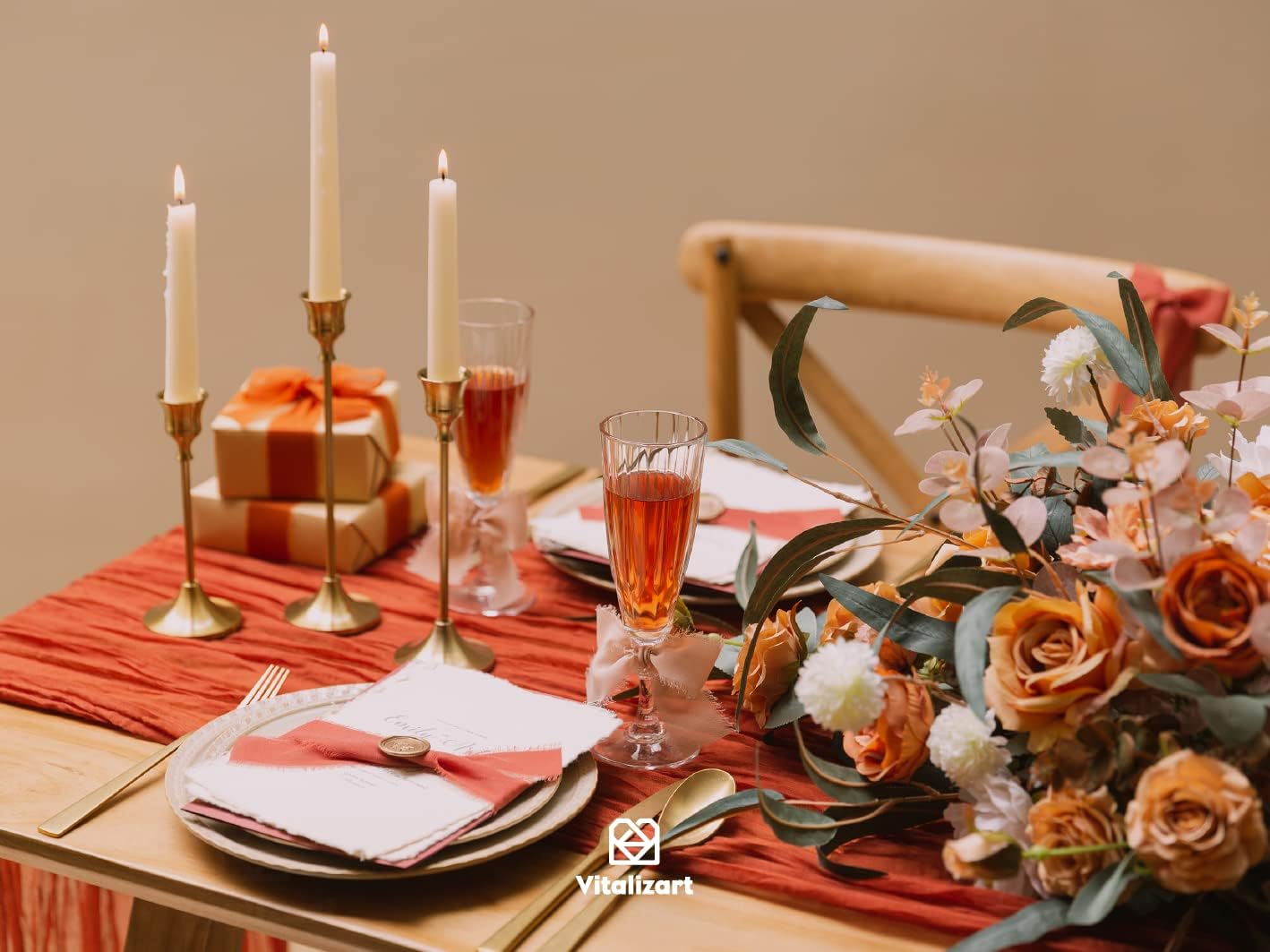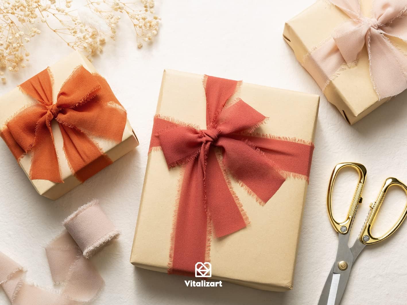 Vitalizart Fall Handmade Chiffon Silk Ribbon Fringe 1.5" x 21 Yd Terracotta Frayed Edges Ribbons for Wedding Invitations Bridal Bouquets Gifts Wrapping Crafts Holiday Party Decorations