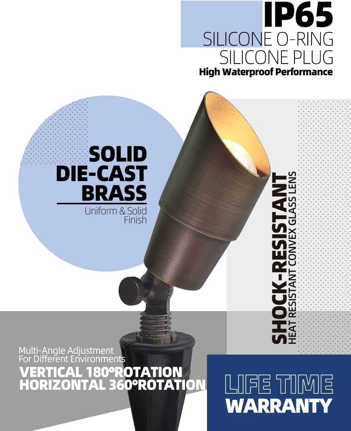 - BRASS LIGHT FIXTURE:MALORY landscape spotlight is constructed of die-cast brass for durability and beauty.Brass spot light doesn't corrode,more durable and reliable than aluminum and plastic fixtures,ideal for any uplighting application.Simple design structure for the light fixture make it looks beautiful yet unobtrusive in any landscape,suitable for decorating most houses and yards.