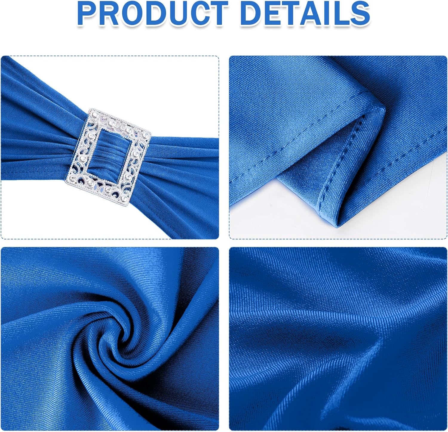Joccun 120 PCS Spandex Chair Sashes Bows Stretch Chair Cover Band with Buckle Slider Universal Elastic Chair Ties for Wedding Banquet Party Event Decoration (Royal Blue)