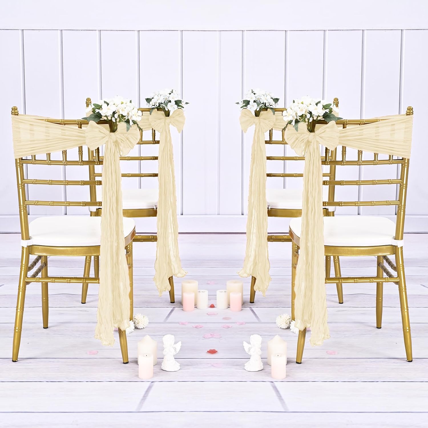 36 Pcs Ivory Cheesecloth Chair Sashes, 16 x 108 inch Gauze Fabric Washable Chair Sashes Bows Designed for Aisle Decorations Universal Chair Cover Decor for Wedding Reception Party Banquet