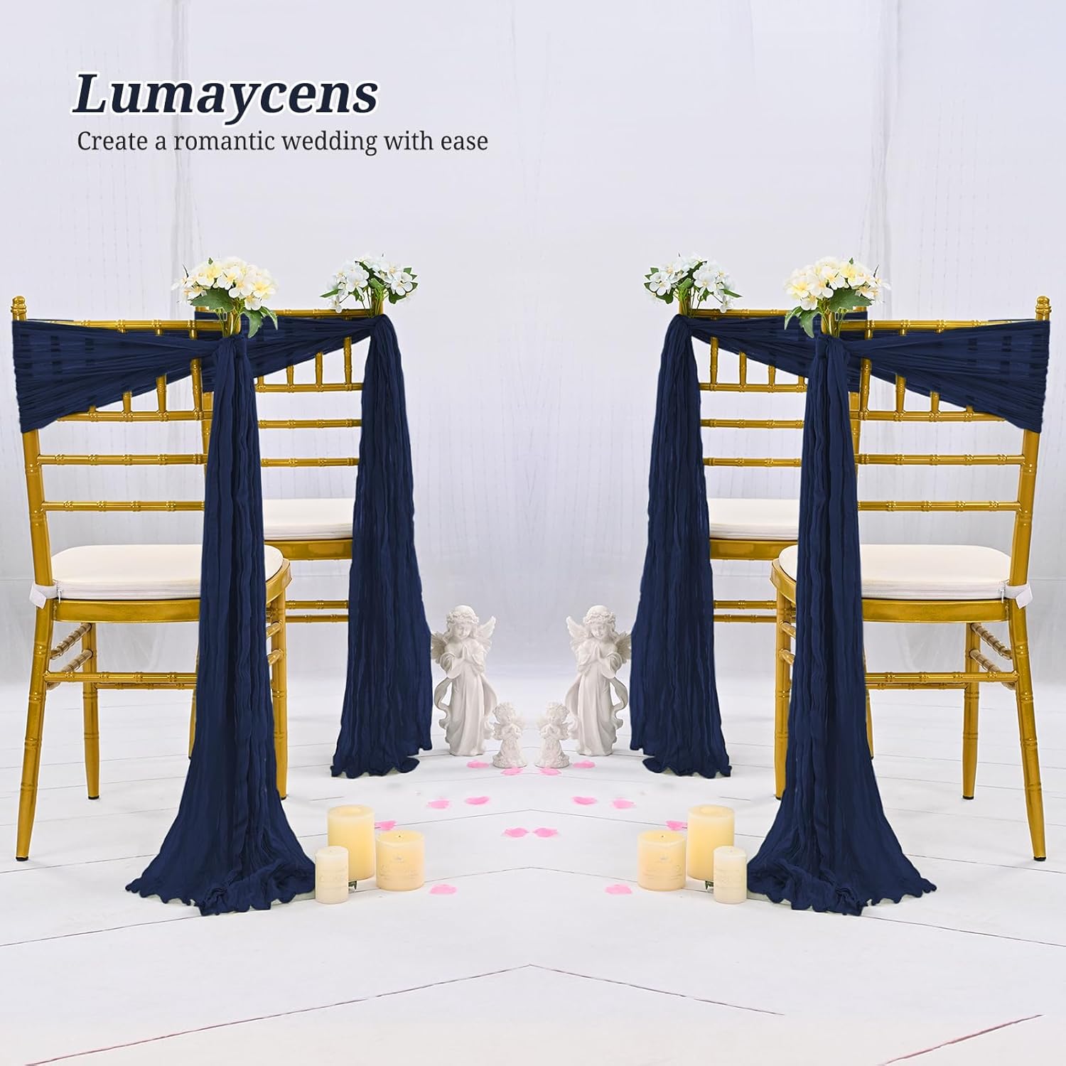 - 【Package includes】You will receive 50 pieces navy blue cheesecloth chair sashes, nough quantity for your daily needs. and they will make your simple chairs more elegant, high-quality cheesecloth chair bows fabric beautifully transforms chairs for a stunning display that makes each guest feel regal.