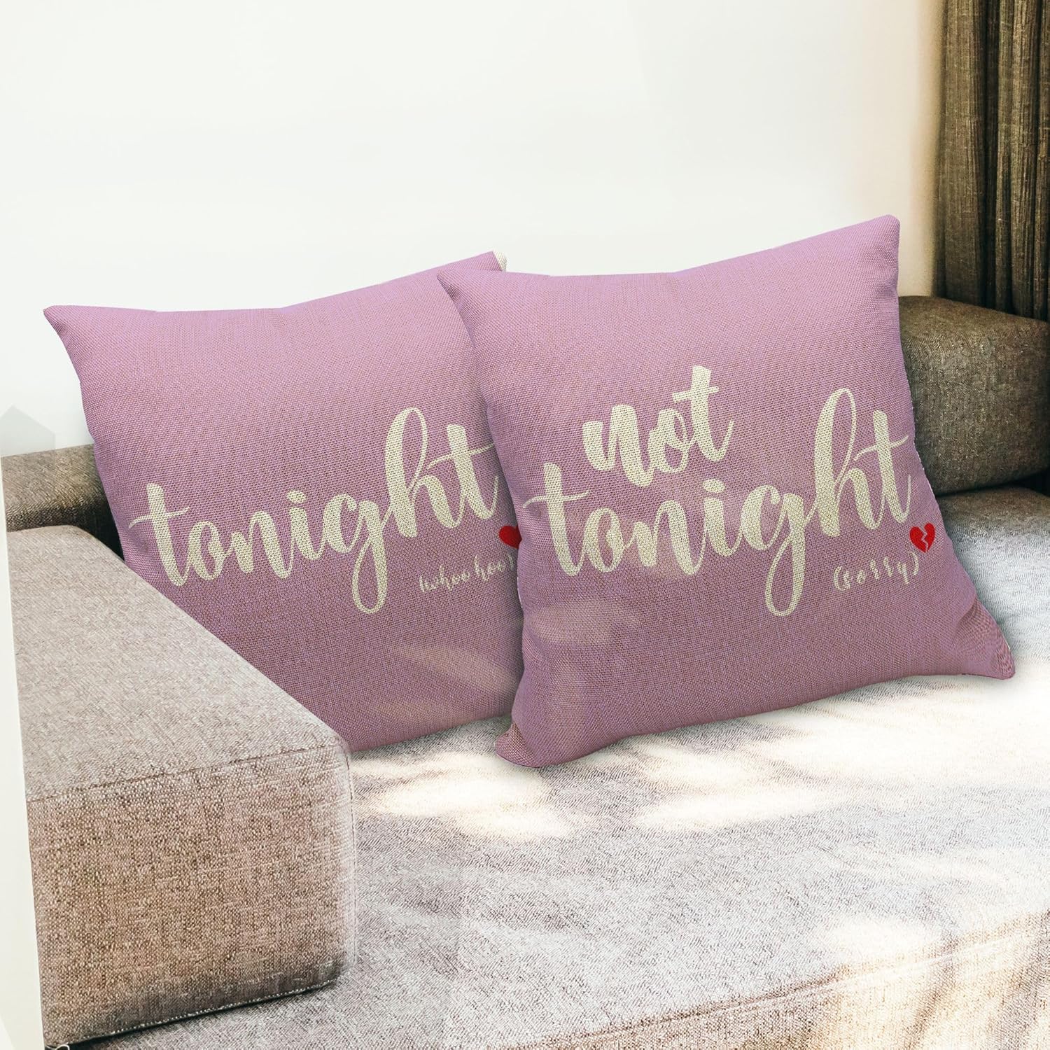 - Dual-sided Design: Enjoy the versatility of two charming patterns β "Tonight" and "Not Tonight." Playfully set the mood by flipping the pillow to match your desires, adding a touch of fun to your bedroom or sofa.