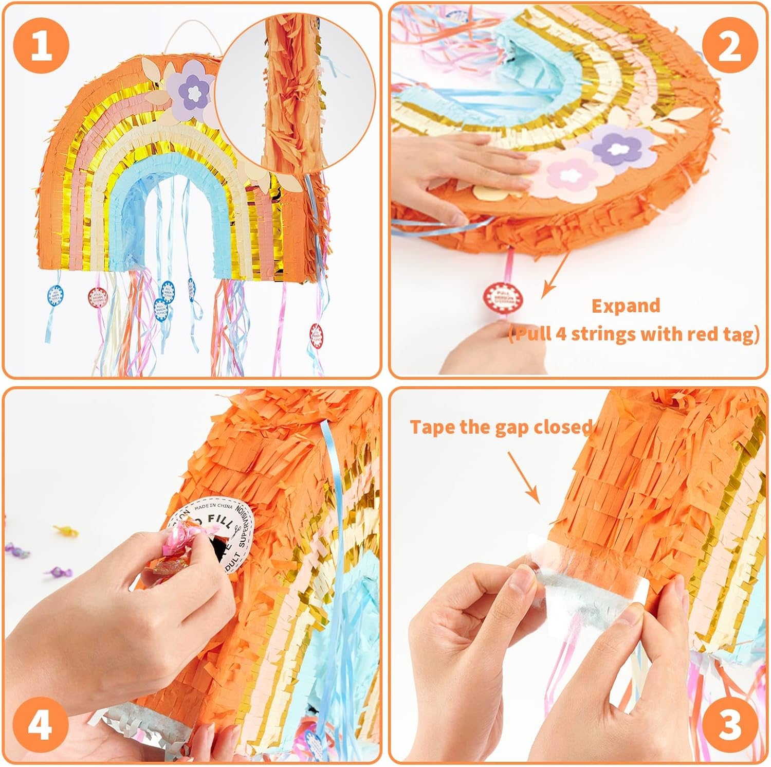 - FOLDABLE RAINBOW PIÑATA - This Piñata is the ideal addition to your rainbow theme birthday party decorations, ensuring your party visually stunning and memorable.