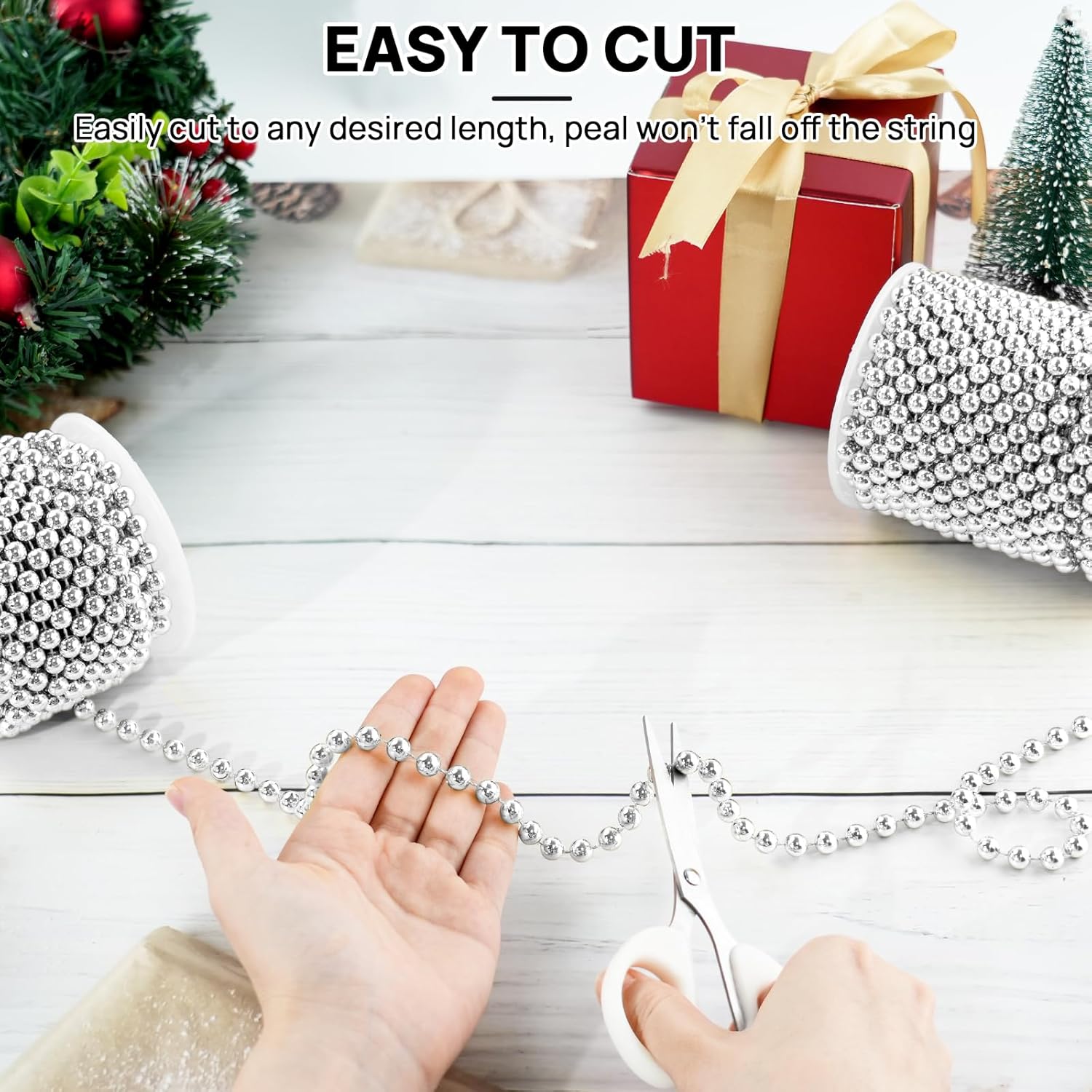 - Customizable Elegance - You can easily trim the pearl garland for decorating to any desired length, and the faux silver beads are tightly attached to the string and won't come off easily, ensuring a solid and long-lasting decorative effect