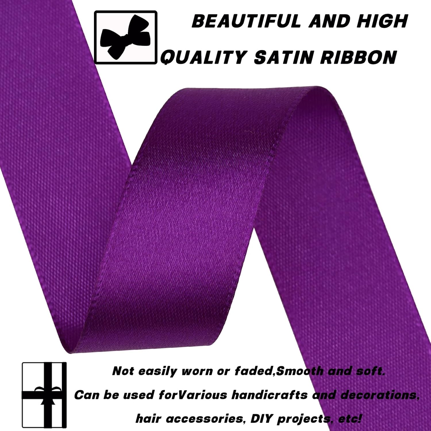 Purple Ribbon 7/8 Inch 60 Yards Satin Craft Ribbon-Single Face Polyester Ribbon for Handmade Roses,Gift Wrapping,Timeless Flower,Bouquets,Wedding and Party Decoration
