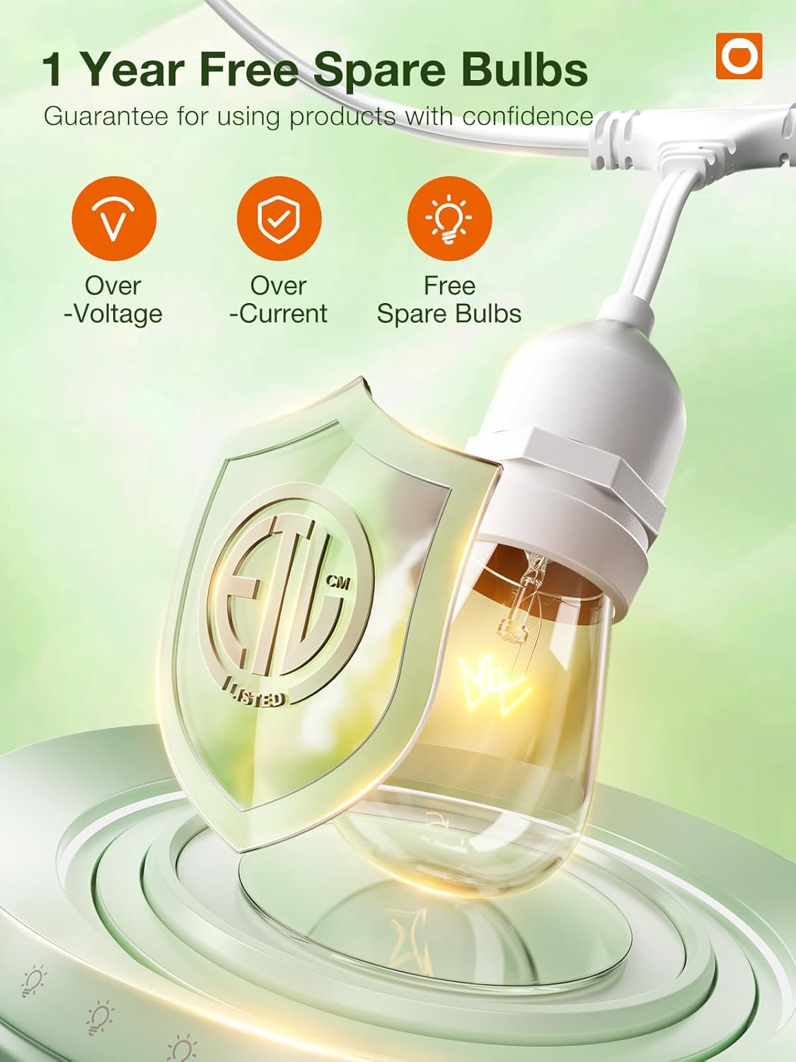 - Weatherproof & Heavy-duty: This outdoor string lights are ETL listed weatherproof commercial. The insulation material can protect the strand from hot winter, sun, wind, rain, snow and damp. Flexible heavy-duty cord withstands the wear of indoor and outdoor use