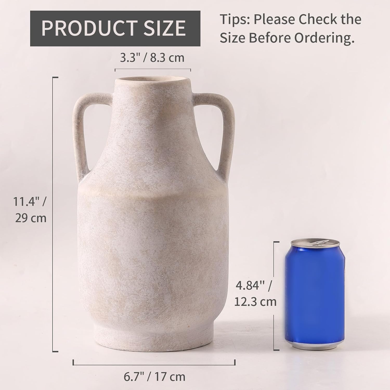 Mitt&Ditt Ceramic Flower Vase with Handles, 11 inch Tall Off-White Vase, Large Decorative Terracotta Vases, Farmhouse Rustic Pottery Vases for Home Decor, Living Room, Table