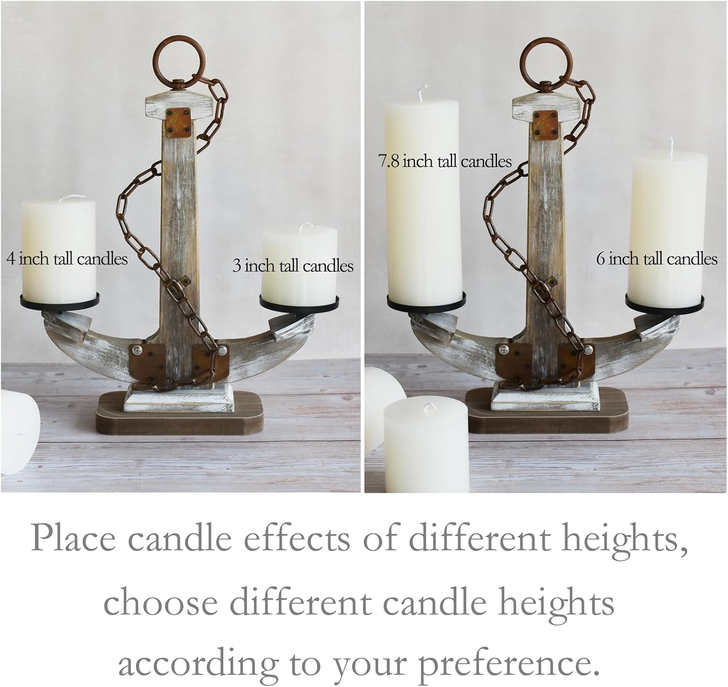 - Candle Stand Size: Overall size: 12.6"Lx 3.54"Dx15.35"H. The wooden anchor candle holder perfectly balances the natural and industrial styles, adding a warm retro atmosphere. The iron cup diameter of the candle holder: 3", load-bearing: 2.2 pounds, it is suitable for most types of candles, making your home more beautiful and elegant. (Candles are not included)