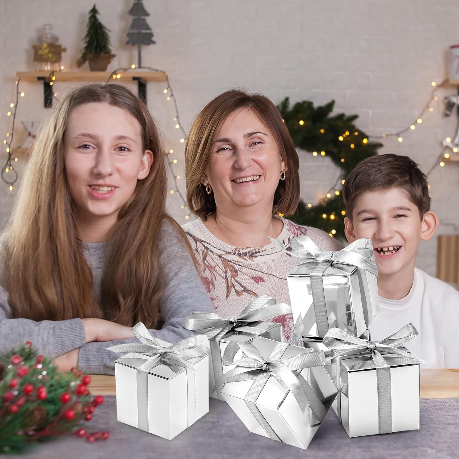 - Package Includes: You will receive 50pcs small silver gift boxes, each with a ribbon and a blank tag. You can tie a bow on top to add an elegant and romantic touch to your party.
