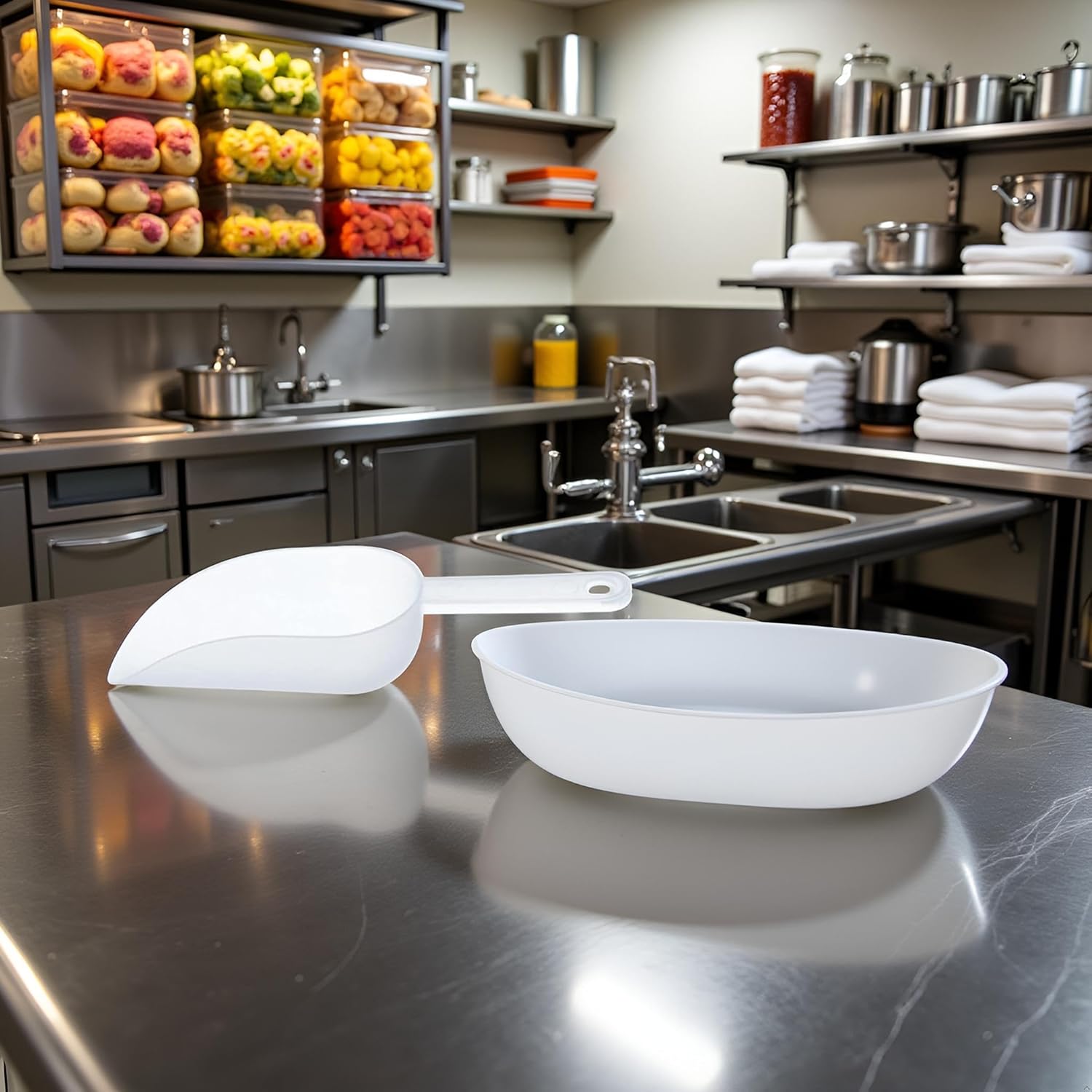 - PRACTICAL FEATURES: Sleek white color and smooth edges prevent scratching containers while ensuring efficient scooping action
