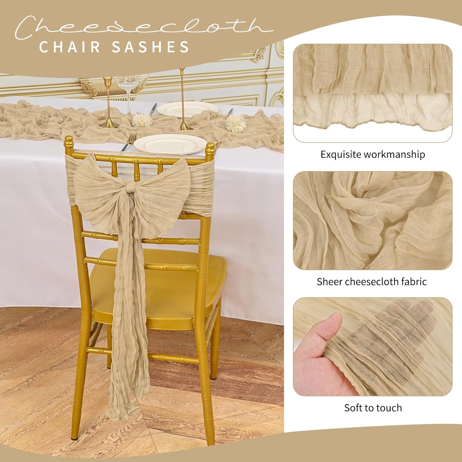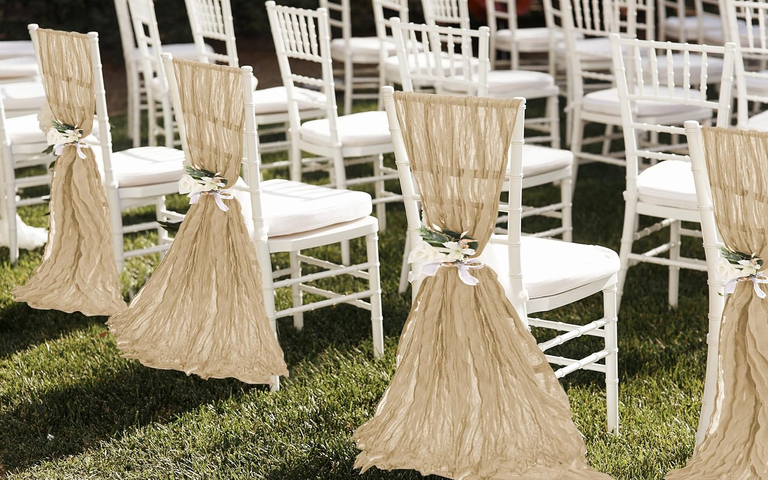 - 【Delicate Craftsmanship】Beige cheesecloth chair sashes adopt unique pleated workmanship, and the overall appearance is simple and elegant, creating an elegant and romantic atmosphere easily. The edges are carefully stitched to keep a perfect flowing condition, will not get broken or loose easily, can serve you for a long time
